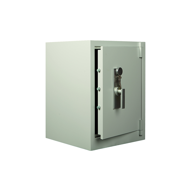 De kast heeft een stevige wand dikte en is volledig dubbelwandig uitgevoerd. Dat maakt hem niet alleen robuust tegen aanvallen van buitenaf, maar zorgt ook voor isolerende voordelen bij brand. De neutrale licht grijs afwerking maakt dat de kast in vrijwel ieder interieur past, van een strak modern kantoor tot een meer traditionele werkruimte.