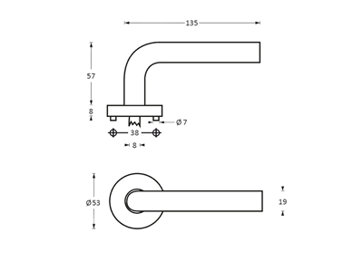 De rozet heeft een diameter Ø 53 mm, een gangbare maat die moeiteloos over bestaande schroefgaten valt bij standaard deuren. Daarnaast is het product geschikt voor een deur dikte van 38–42 mm. Hierdoor sluit het perfect aan bij de meest voorkomende binnendeuren in woningen en kantoren.