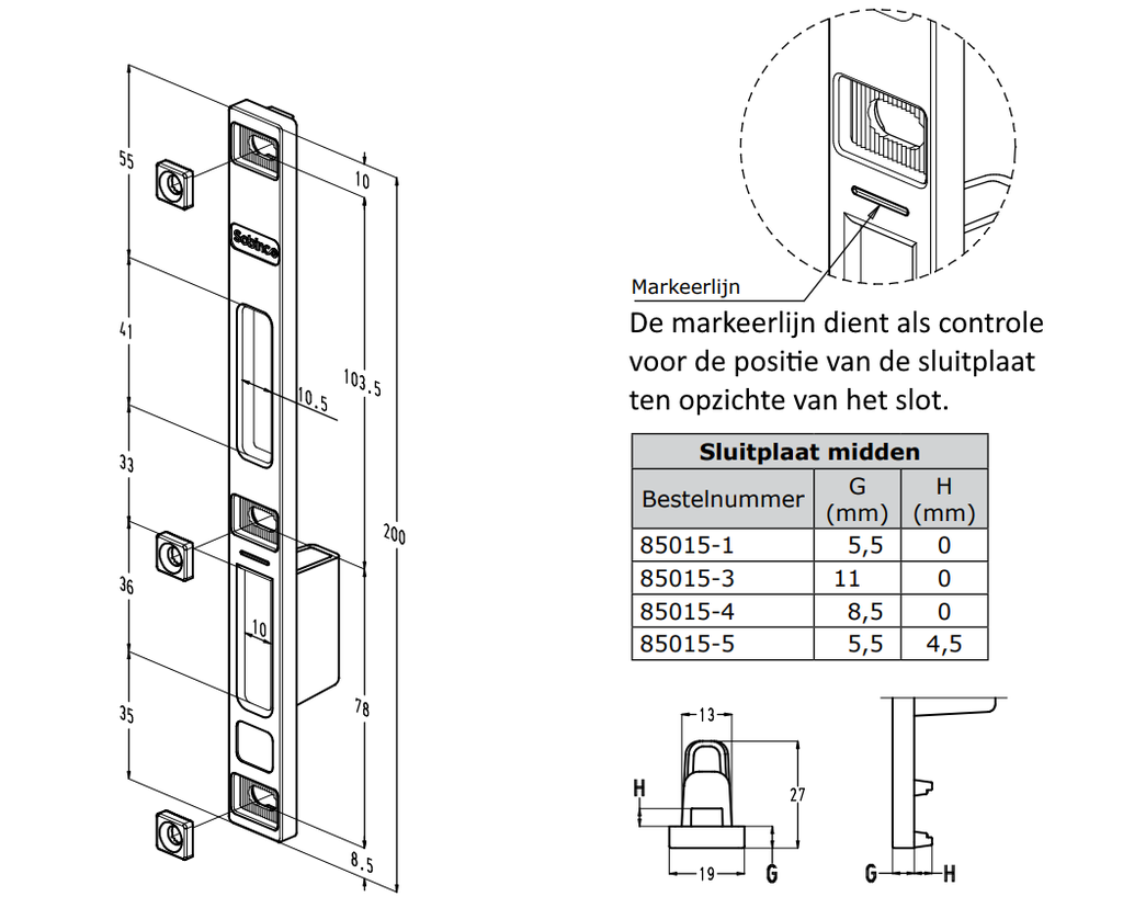 De middensluitplaat is een essentieel onderdeel van de Reeks Orca van SOBINCO. Deze lijn staat bekend om haar hoogwaardige sluittechniek en betrouwbare werking in verschillende toepassingen. Of het nu gaat om een dag- & nachtslot voor een appartemententoegang of een stevig raam in een kantoorgebouw: deze sluitoplossing werkt naadloos samen met de andere Orca-componenten. Installateurs die met deze reeks werken, ervaren optimale compatibiliteit en vlotte montage.