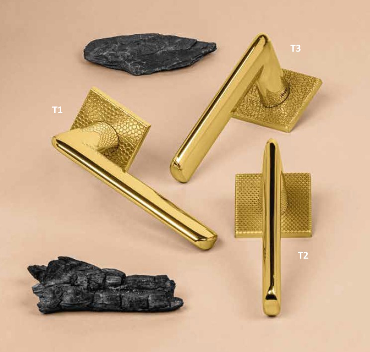 Dit model valt direct op door zijn strakke lijnen en moderne uitstraling. Dankzij de keuze uit afwerkingen zoals T1 – Pebbles, T2 – Waterfall en T3 – Leather kunt u de uitstraling moeiteloos afstemmen op uw interieur. De matte structuren geven extra grip en een luxueuze indruk. Het vierkante rozet van 52 mm sluit strak aan op de deur en laat geen ruimte voor ongewenste naden, waardoor een tijdloos geheel ontstaat. Daarbij is er keuze uit stijlen als zilver, zwart, chroom, messing of brons, zodat u altijd een uitvoering vindt die past bij uw interieur.